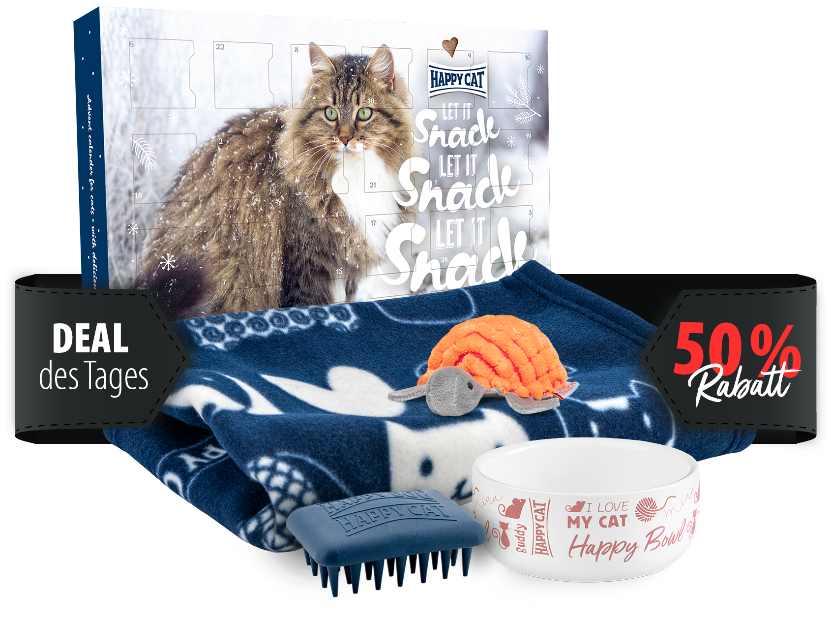 * Gültig bis 31.12.2025, 1 x je eingeloggtem Endkunden, solange der Vorrat reicht. Versandkosten fallen entsprechend der Standardbedingungen des Happy Cat Onlineshops an. Wir behalten uns vor, die Aktion jederzeit vorzeitig zu beenden.
