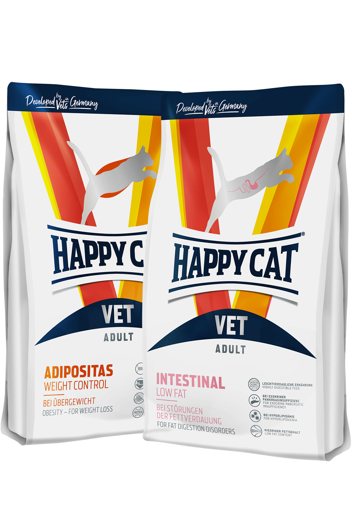 Unsere von Tierärzten entwickelte Spezialdiät für übergewichtige Katzen hat einen deutlich niedrigeren Energiegehalt sowie viele sättigende Ballaststoffe. Wenn du möchtest, dass deine Katze organschonend ihr Gewicht reduziert, dann ist das schmackhafte Happy Cat VET Adipositas perfekt dafür geeignet. Jetzt gratis* probieren & abnehmen!